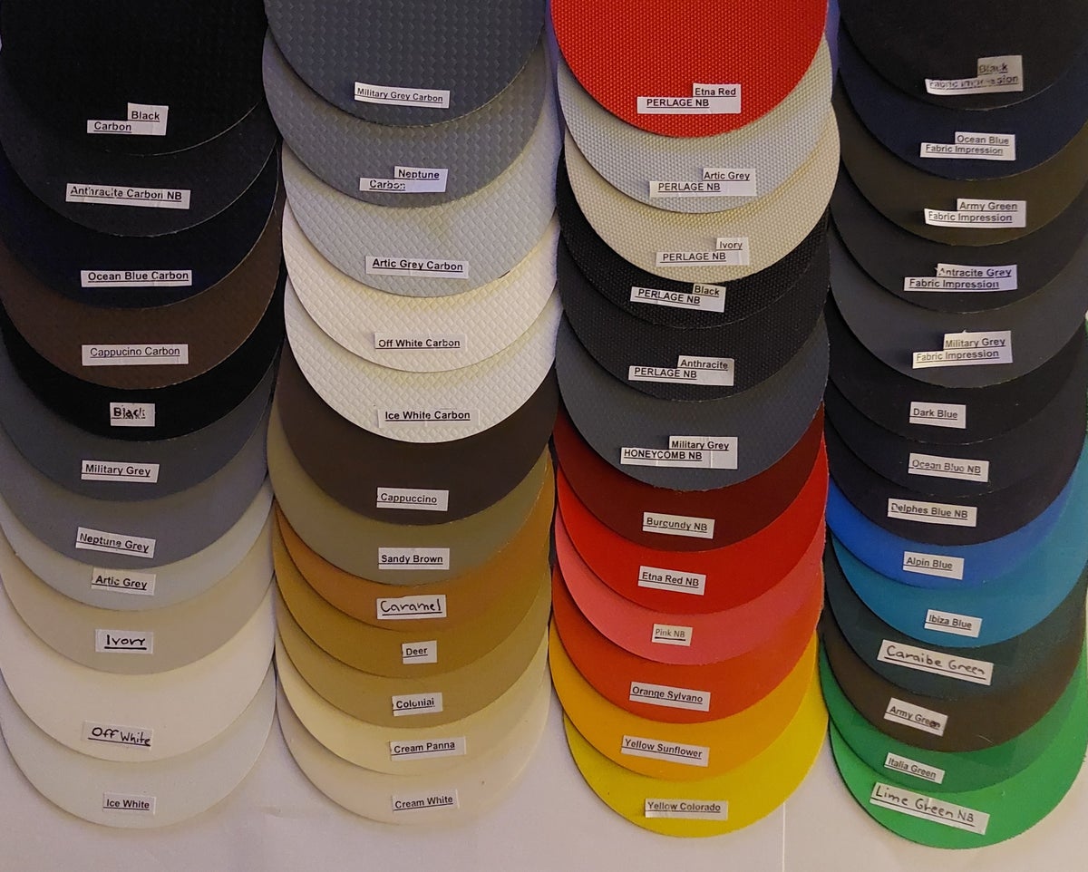 Hypalon fabric patch for repairing small holes. Round (diameter 85 mm). Several options available. Also available with patterns: Carbon, HoneyComb, Perlage, and Fabrik Impression.